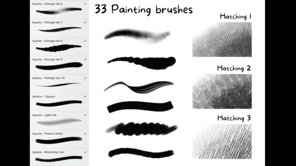– 3 Hatching brushes